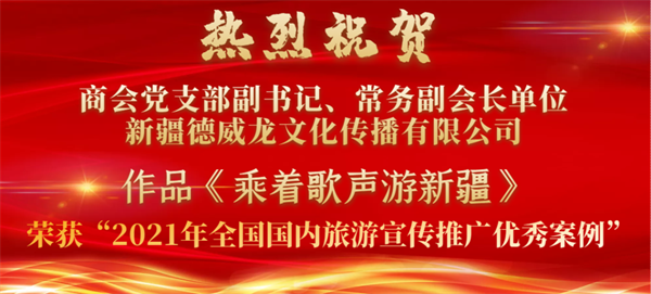 【会员动态】热烈祝贺商会党支部副书记、常务副会长单位、新疆德威龙文化传播有限公司作品《乘着歌声游新疆》获奖