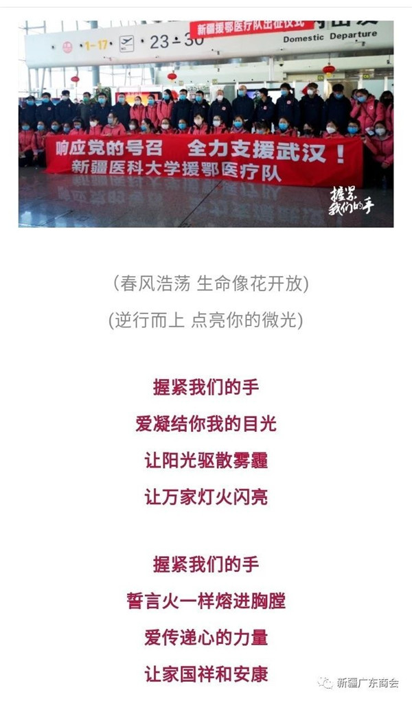 商会常务副会长单位、新疆雅辞文化发展有限公司响应自治区党委宣传部的号召、创作制作抗疫情歌曲及MV:《握紧我们的手》、《等待春暖花开时》。