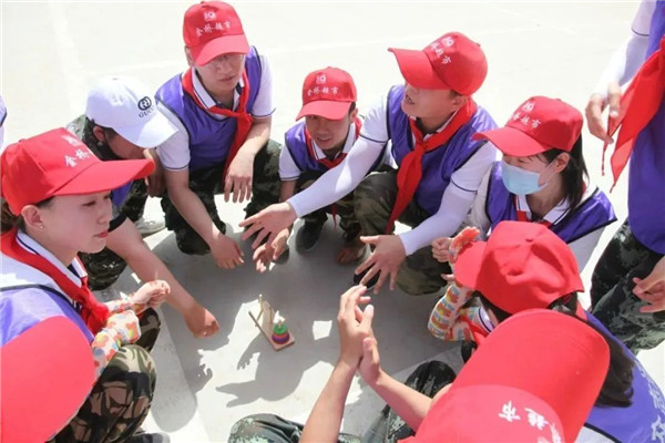 再次集合后,伙伴们跟随教练进行了列队训练和热身小游戏,在紧张和欢乐的氛围下开始了一天的特训。