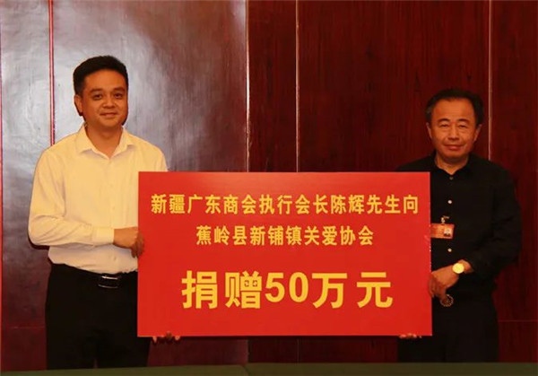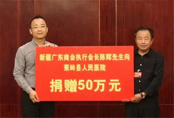 粤商多善举,事业有成的陈辉奉行“低调做人,高调做事”的原则,积极践行乐善好施、助人为乐的传统美德。1999年,他出资为家乡修建了一条由村里通往镇上的路,方便了大家的出行;2011年,他开始给村里60岁以上老人每人每月发100—500元生活补助,目前约有180位老人定期领取;2017年6月他向于田县贫困小学捐建一间音乐教室,配备电子琴20台及其它乐器,使该小学从此结束了没有音乐教室的历史;2018年北园春果业经营公司向吐鲁番市高昌区人民政府捐款15万元用于基层文化建设;在“乡贤反哺粤东行”投资考察座谈会上向家乡捐款100万元,为家乡蕉岭医疗事业建设及慈善事业发展贡献力量。