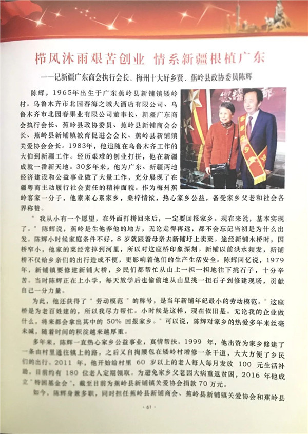 【会员荣誉】热烈祝贺商会执行会长、新疆北园春市场董事长陈辉荣登《广东改革开放杰出贡献人物》
