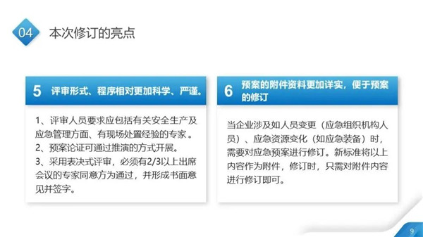 1.修改和规范了应预案编制程序,由6条改为8条,增加了应急资源调査和桌面推演。其中桌面推演衔接了标准AQ/T9007-2019《生产安全事故应急演练基本规范》。