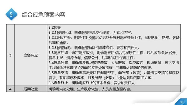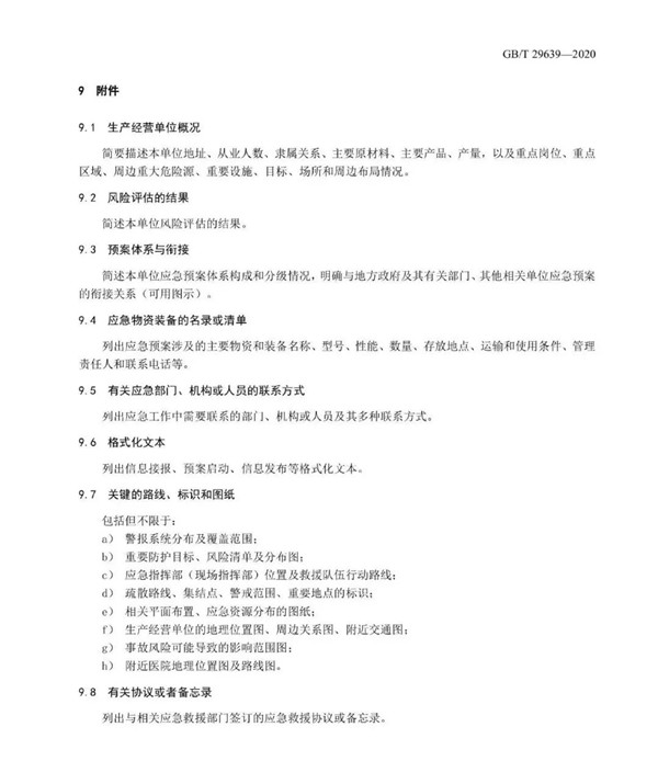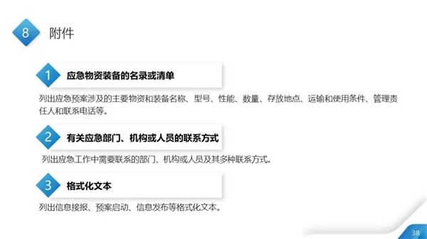 6.补充了应急预案附件组成,增加“生产经营单位概况”,“预案体系与衔接”,“风险评估结果”,强调应急预案必须兼容和衔接。并将风险评估结果直观的写在附件中,清晰明了。