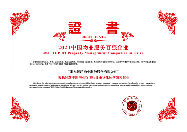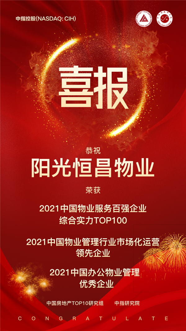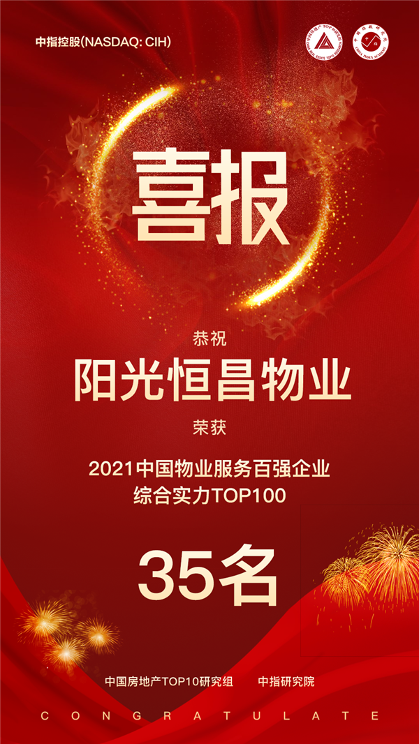 【会员动态】热烈祝贺商会名誉会长单位、阳光恒昌物业跃升“2021中国物业服务百强企业”第35位