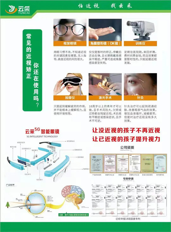 罗总介绍:云采5G智能眼镜运用脑视觉成像的原理,通过动态变焦训练,优化大脑处理影像的能力,从而达到裸眼视力的有效提升,我们的产品能提升裸眼视力和戴镜视力,降低矫正度数。针对8-18岁青少年,近视度数在600度以内,散光度数在100度以内,无眼病的人群。